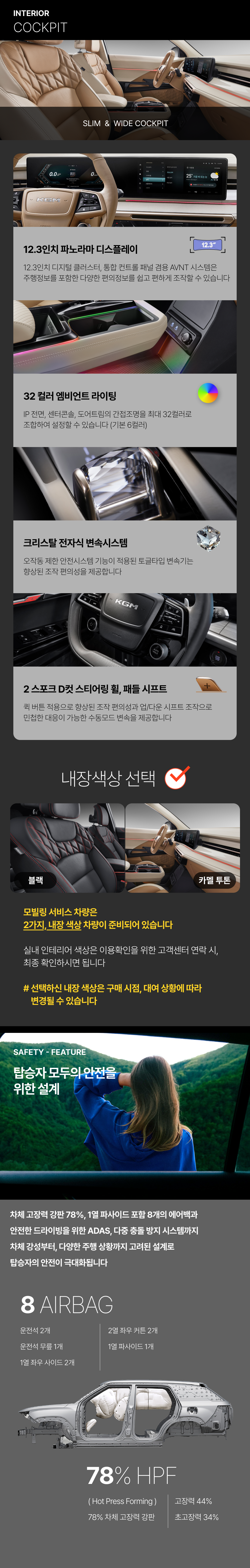 KGM 모빌링 서비스 차량은 차종별, 동일 사양의 차량이 준비됩니다
